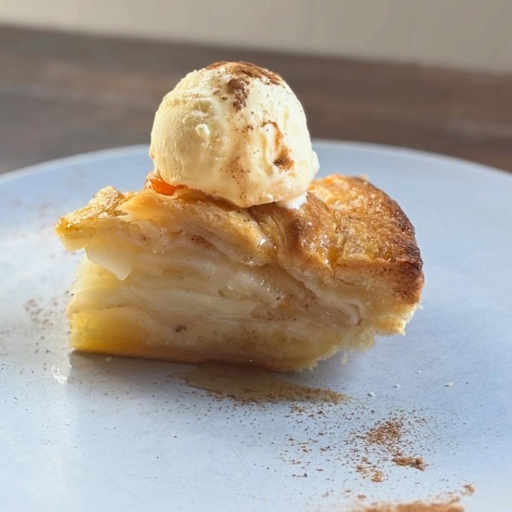 本日は高野産林檎をたっぷり使った”アップルパイ”も焼いています。期間限定パンケーキ”アップルキャラメルナッツパンケーキ”限定5食、ハワイアンパンケーキは限定15食ご用意しております。