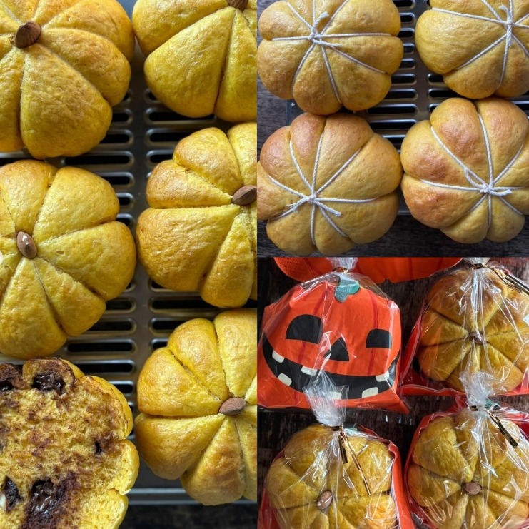 カボチャ生地にアーモンドとビターチョコ入りのハロウィン仕様のベーグル