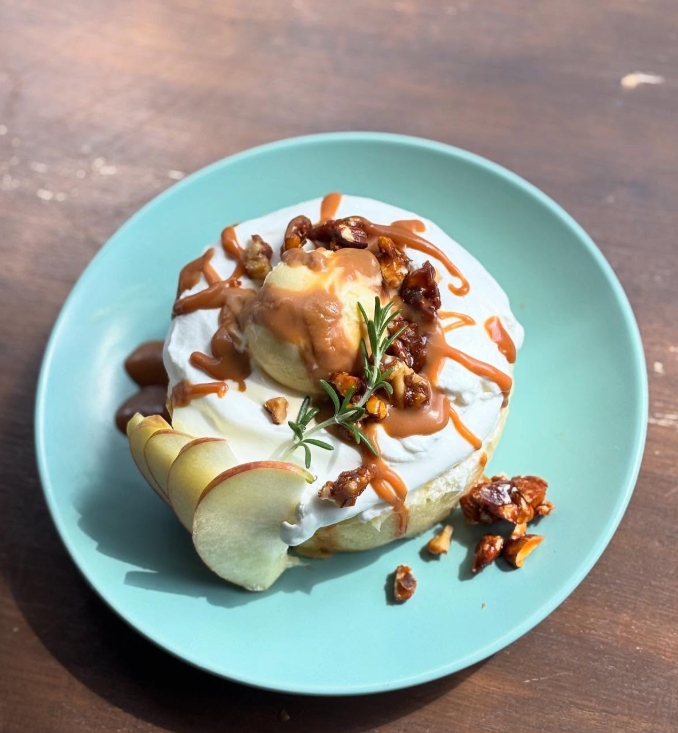 期間限定パンケーキ”アップルキャラメルナッツパンケーキ”限定5食、ハワイアンパンケーキは限定15食ご用意しております。