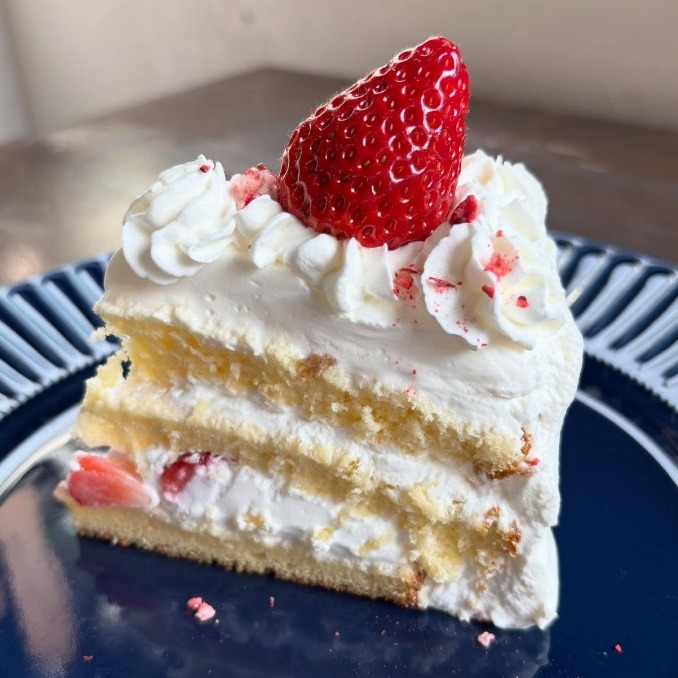 本日は本日はひらひら舞う雪をイメージした、生クリームたっぷり、真っ白にデコレーションした苺ショートケーキをご用意しています。食べ応えも◎是非ご賞味ください。