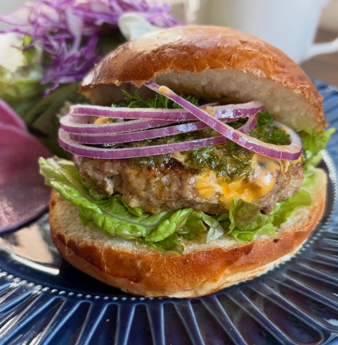 *チキンキーウ・・・ウクライナの首都キーウの名物料理。鶏胸肉にバターとハーブ(ディル)包んで揚げたチキンカツ。ナイフを入れると中からジュワっとバターが溶け出します。