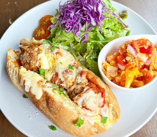 Aランチ:ミートボールパルメザンサンド(焼きたてフランスパン) ドリンク付き¥1450
