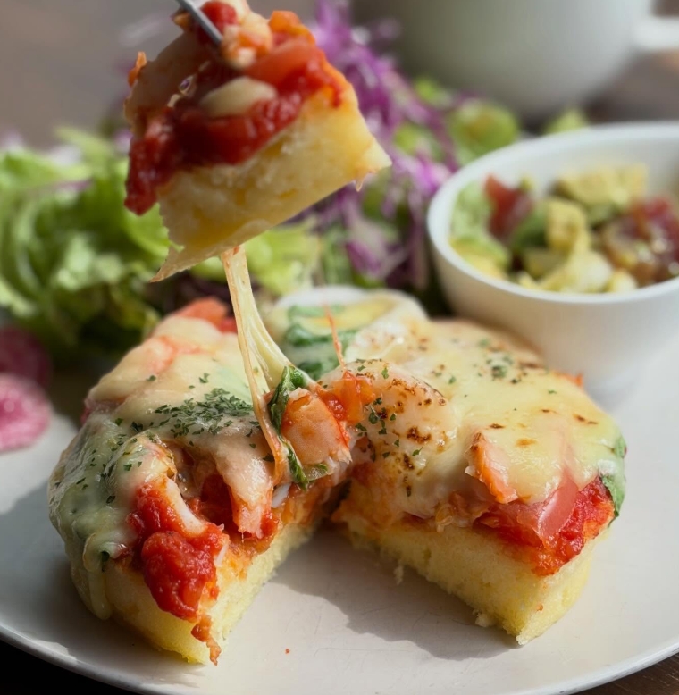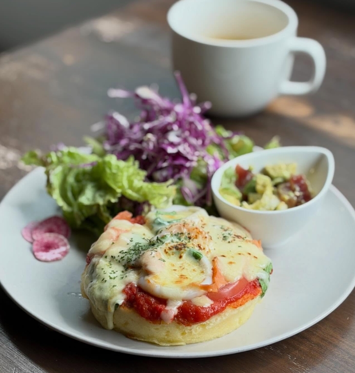 Aランチ:シーフートピザ風パンケーキ ¥1200 ドリンク付き¥1450